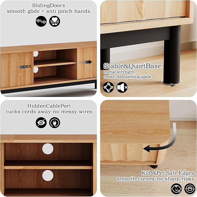 - ENGINEERED STABILITY PROTECTION - Supported by durable metal legs with anti-slip silent silicone pads, this brown wood tv stand ensures stable placement and reduces noise. The anti-tip design adds extra security, designed with soft-rounded corners and child-friendly profiles, making it suitable for families with kids or pets