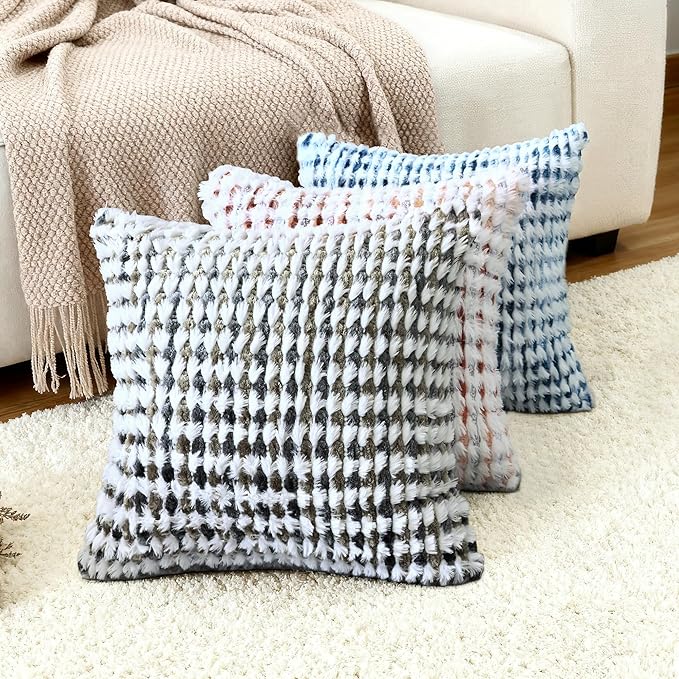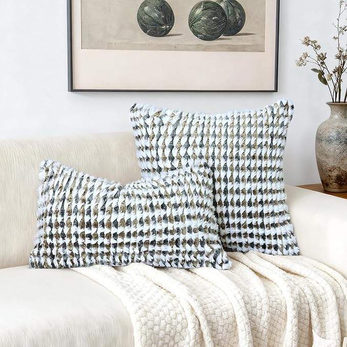 - 【Premium Material & Hidden Zipper】The front of the striped pillow covers is made of chenille and the back is made of soft white cotton canvas; chenille pillow covers is covered with a layer of fine white fluff, which gives the pillowcase a fluffy texture; boho throw pillows will not deform due to long-term compression or frequent use; These pillow covers 20x20 feature a seamless, hidden zipper that glides smoothly and effortlessly