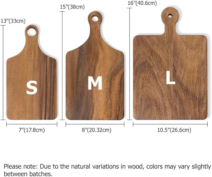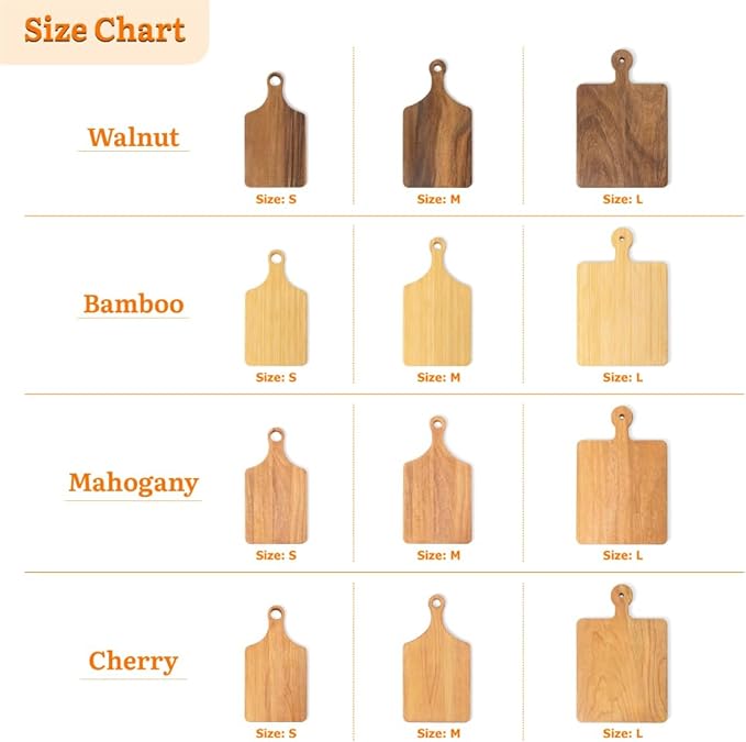 - Three Dimensions – Available in 3 sizes: S - 7" × 13" × 0.6", M - 8" × 15" × 0.6", L - 10.5" × 16" × 0.8". Three sizes ensure your personalized cutting boards fits perfectly on any countertop or table, whether slicing cheese, carving roasts, or displaying charcuterie.