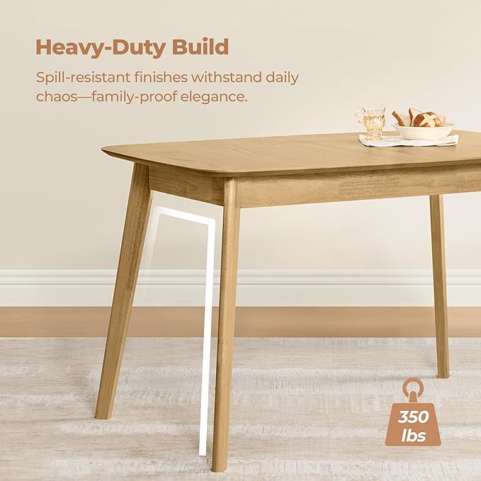 - Sturdy Tapered Design - This modern dining table combines style and strength with its hand-turned, tapered legs crafted from solid rubberwood. The sleek design, featuring child-safe rounded corners, ensures both safety and elegance, supporting up to 350 lbs, making it a durable centerpiece for any dining room.