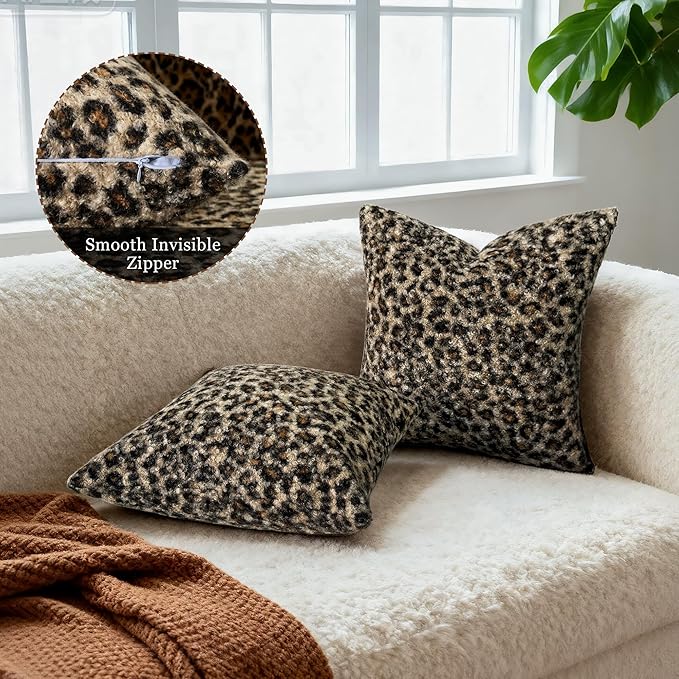 - 【Soft Boucle Material】Our Leopard pillow covers are made from high-quality boucle fabric, offering a plush and cozy feel without any peculiar smell; The double-sided cheetah print designs add a touch of wild elegance to your home decor; Perfect for modern, vintage styles