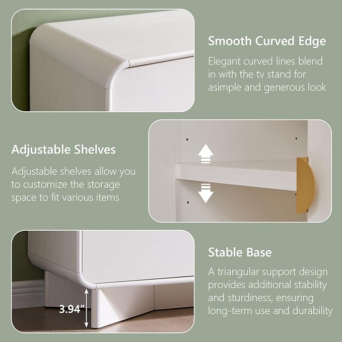 - Adjustable Shelves: The modern TV stand Cabinet features 2 height adjustable shelves, allowing you to freely customize the spacing between shelves according to the size of your stored items. Define your storage layout with complete freedom.This flexibility ensures your storage space remains highly efficient at all times. And 4 door cabinets provide convenient access while keeping everything neatly organized and clutter-free