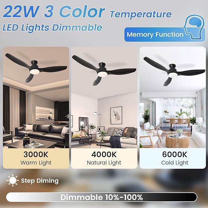 - Special Feature : Flush Mount Ceiling Fan with Light and Remote, 52 inch Low Profile Ceiling Fans with Remote, 3 Color Light, 6 Speed, DC Motor, Black Flush Mount Ceiling Fan with Light and Remote, 52 inch Low Profile Ceiling Fans with Remote, 3 Color Light, 6 Speed, DC Motor, Black