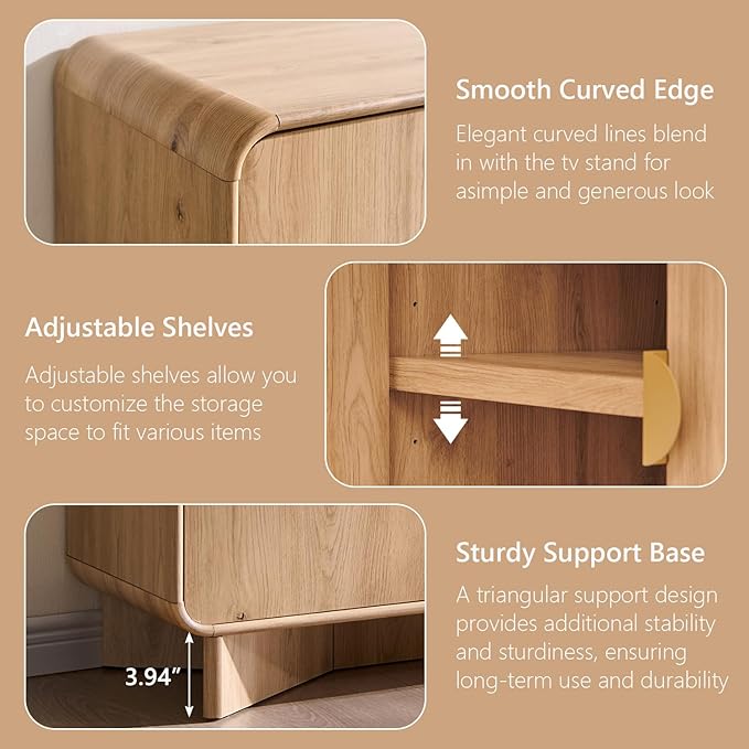 - Modern Curved Design: Our sideboard buffet cabinet features a unique curved profile design that perfectly blends elegant lines with a smooth textured surface, enhancing visual appeal and highlighting modern aesthetics. The Curved corners design not only simplify the appearance but also facilitate daily use while improving safety, adding a sense of warmth to your home. Complementing both modern and classic styles, this versatile buffet storage cabinet will be the highlight of your indoor room