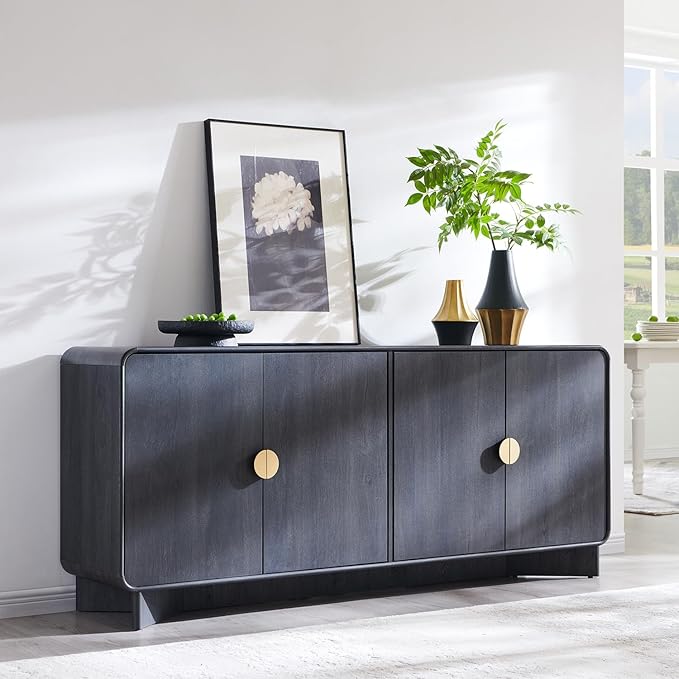 - Modern Curved Design: Our sideboard buffet cabinet features a unique curved profile design that perfectly blends elegant lines with a smooth textured surface, enhancing visual appeal and highlighting modern aesthetics. The Curved corners design not only simplify the appearance but also facilitate daily use while improving safety, adding a sense of warmth to your home. Complementing both modern and classic styles, this versatile buffet storage cabinet will be the highlight of your indoor room