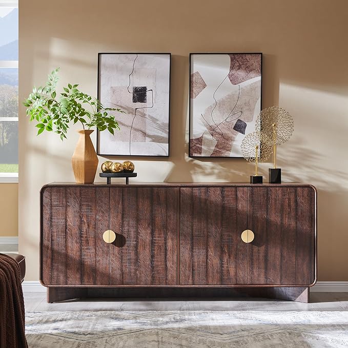 - Modern Curved Design: Our sideboard buffet cabinet features a unique curved profile design that perfectly blends elegant lines with a smooth textured surface, enhancing visual appeal and highlighting modern aesthetics. The Curved corners design not only simplify the appearance but also facilitate daily use while improving safety, adding a sense of warmth to your home. Complementing both modern and classic styles, this versatile buffet storage cabinet will be the highlight of your indoor room