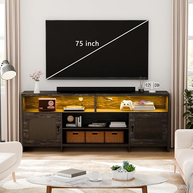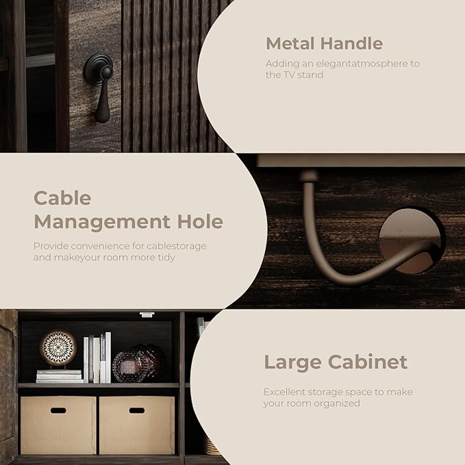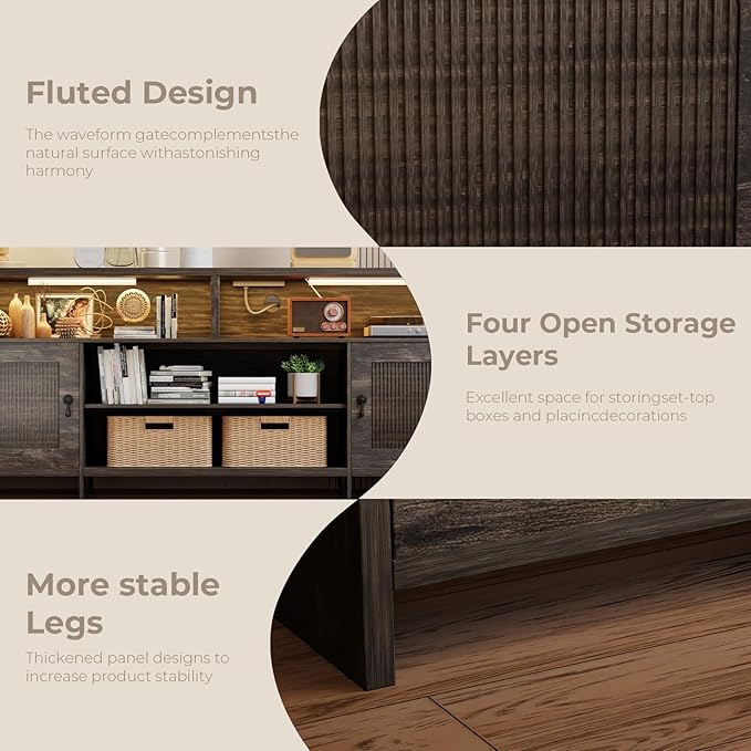 - Ample Storage Space: The fluted TV Stand with 4 open storage shelves and 2 storage cabinets to meet your daily storage needs
