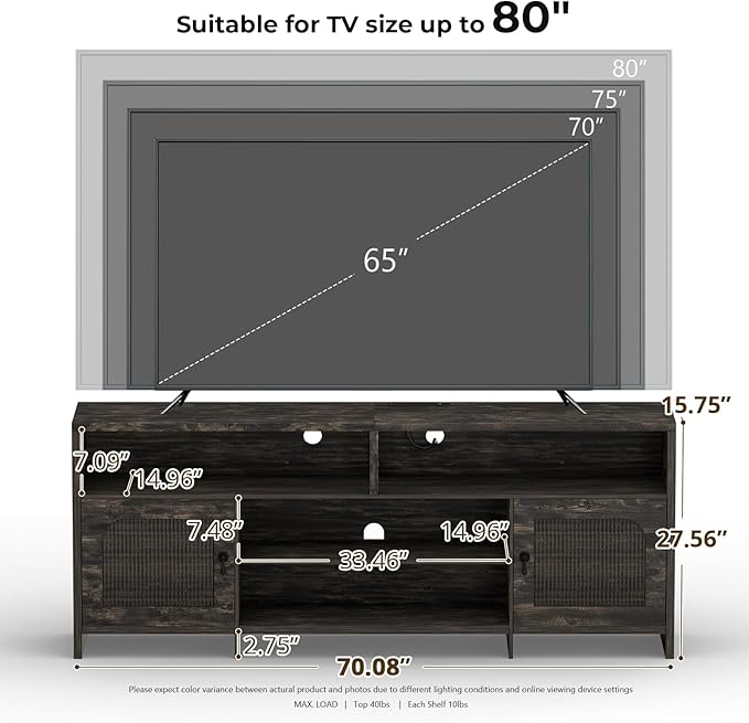 - Extended Size for Large TV: The fluted TV stand is 70 inches, which is longer than most existing TV stands, it can fit 65/70/75/80 inches TV.