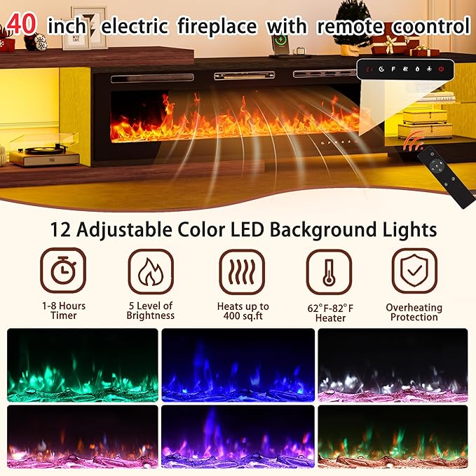 - Electric Fireplace: Featuring a 40" Electric Fireplace with remote control, this unit not only provides warmth but also creates a cozy atmosphere, perfect for family gatherings or movie nights.