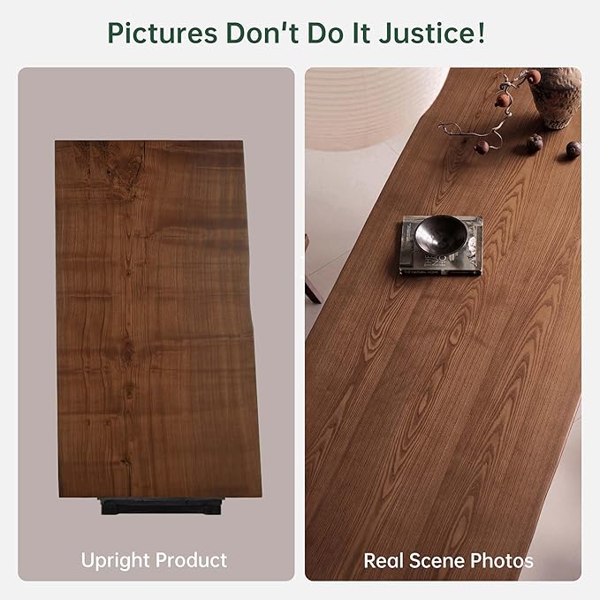 - 【 Premium North American Black Walnut 】 Expertly crafted from select North American Black Walnut, this solid wood table top offers superior hardness and durability. Its fine, elegant grain reveals a natural, luxurious texture that grows more beautiful over time, ensuring your live edge dining table remains a timeless centerpiece.